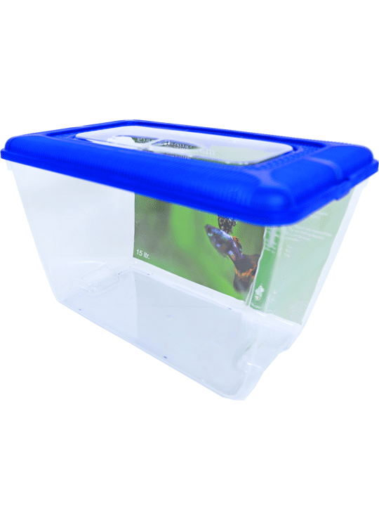 Gebr. de Boon BV plastic aquarium met een blauwe plastic afdekkap waardoor de vissen er niet uit kunnen springen met een handig transparant voederklepje in de afdekkap. Verkrijgbaar in meerdere maten.
