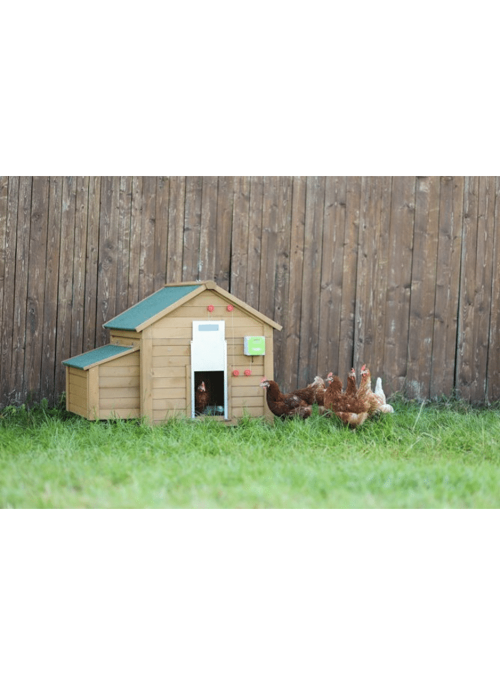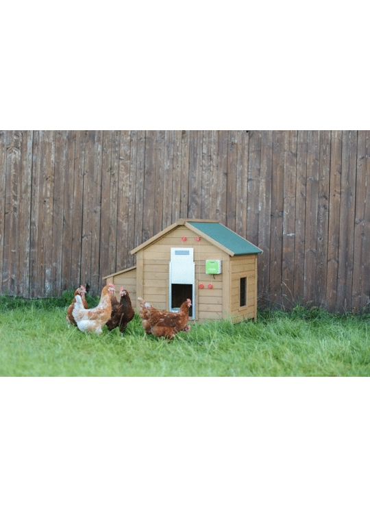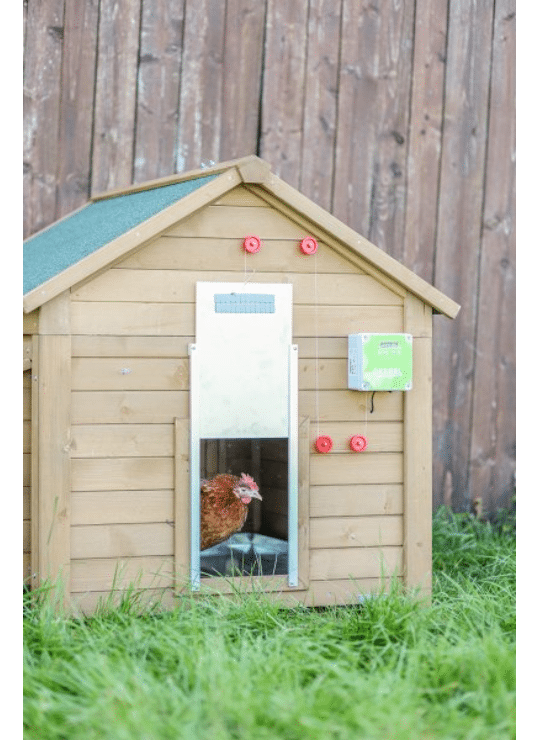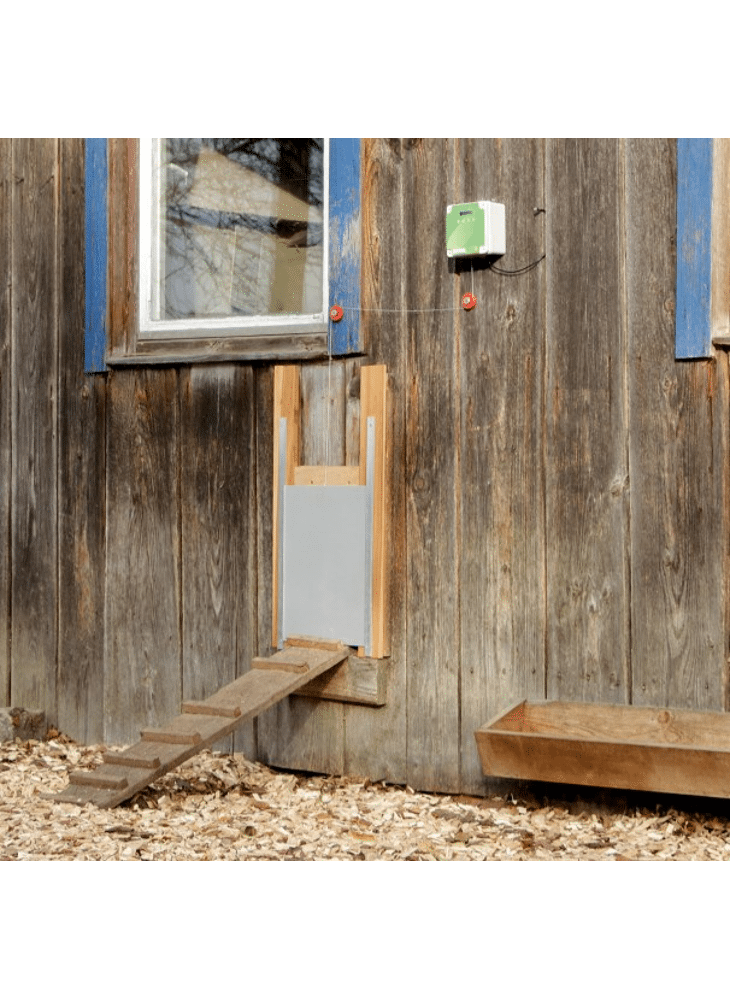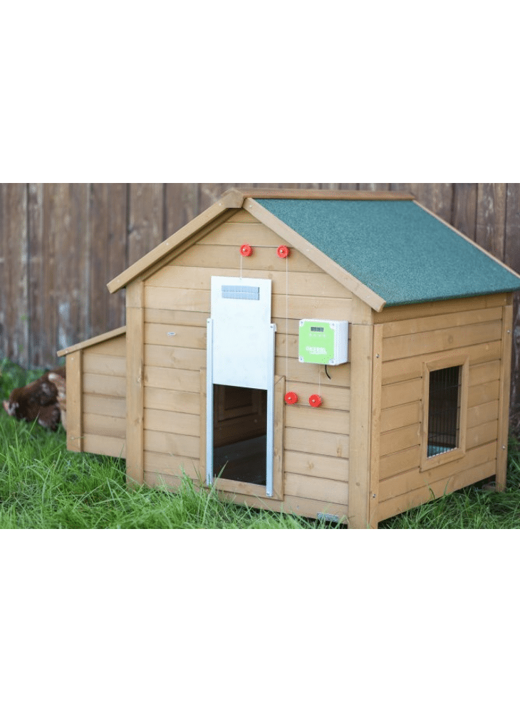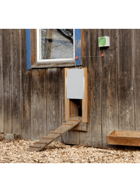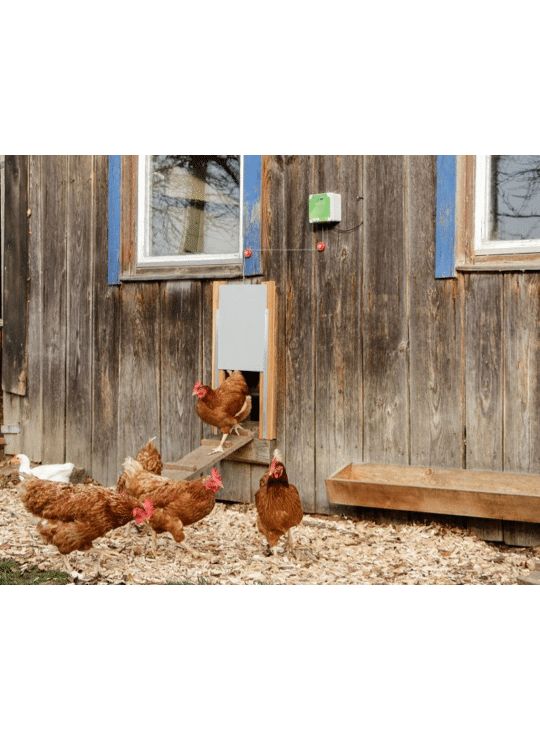 - De automatische kippenschuif heeft verschillende functies voor het openen en sluiten van de schuif: