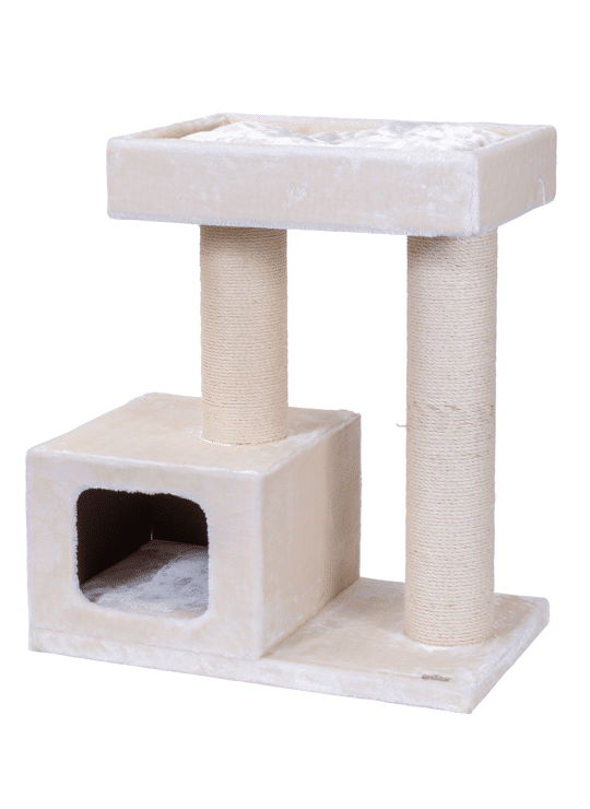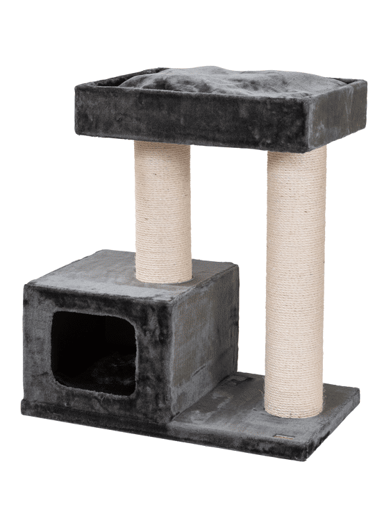 Deze bescheiden krabpaal is door de riante ligplaatsen en dikke sisalpalen geschikt voor grotere en zwaardere katten. De krabpaal is zeer stabiel en heeft ook een uitneembaar kussen waarvan de hoes afritsbaar is zodat het gewassen kan worden. De krabpaal beschikt over een dikke bodemplaat en een ruim lighol, perfect om zijn rust te vinden.