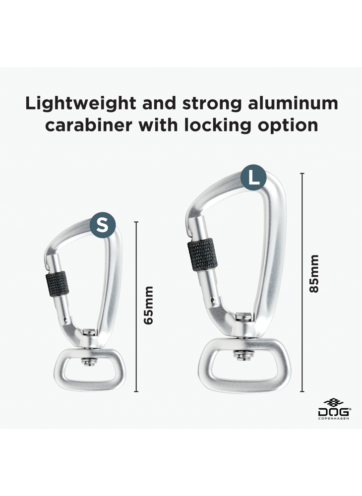 - Lichtgewicht en sterke aluminium karabijnhaak met vergrendelingsoptie (2 maten)
