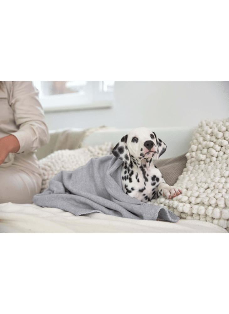 Uitgespreid op de vloer beschermt de deken de hond tegen de onaangename kou van de vloer . Als praktische plaid zorgt hij ervoor dat hondenbedden, banken, fauteuils etc. beschermd zijn tegen haren en vuil.