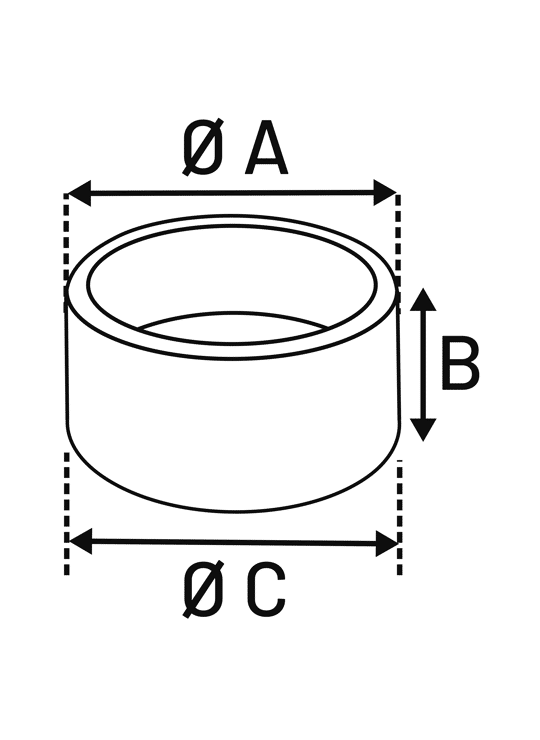 - 100ml: A:8,5cm B:3cm C:8,5cm
