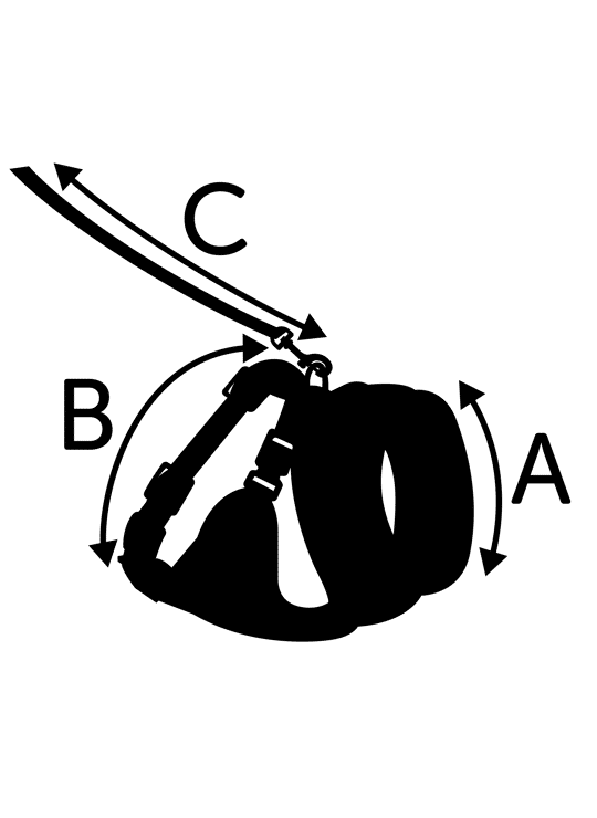 - Het harnas heeft een kliksluiting en de lijn heeft eenkarabijnhaak