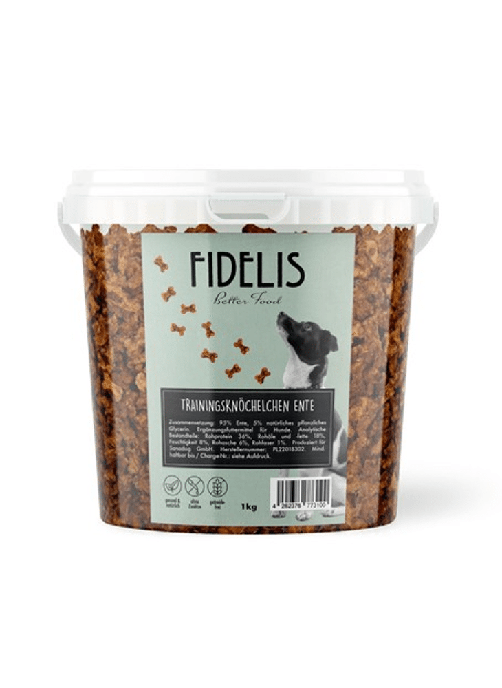 Aangezien er tijdens de training vaak veel snacks worden gebruikt (wie heeft dit niet meegemaakt), zijn gezonde ingrediënten bijzonder belangrijk. Fidelis trainingsbotjes zijn gemaakt van puur vlees en zijn verfijnd met een vleugje glycerine uit koolzaadolie (een vetcomponent). De gezonde glycerine bindt water en zorgt voor de zachte consistentie. De trainingsknokkels worden in onze eigen fabriek geproduceerd zonder toevoegingen zoals maïs, tarwe, soja, kleurstoffen, conserveermiddelen, vleesmeel of andere vulstoffen en worden voorzichtig aan de lucht gedroogd. Onze luchtdroogtechnologie is een moderne interpretatie van eeuwenoude vleesconserveringstechnieken.