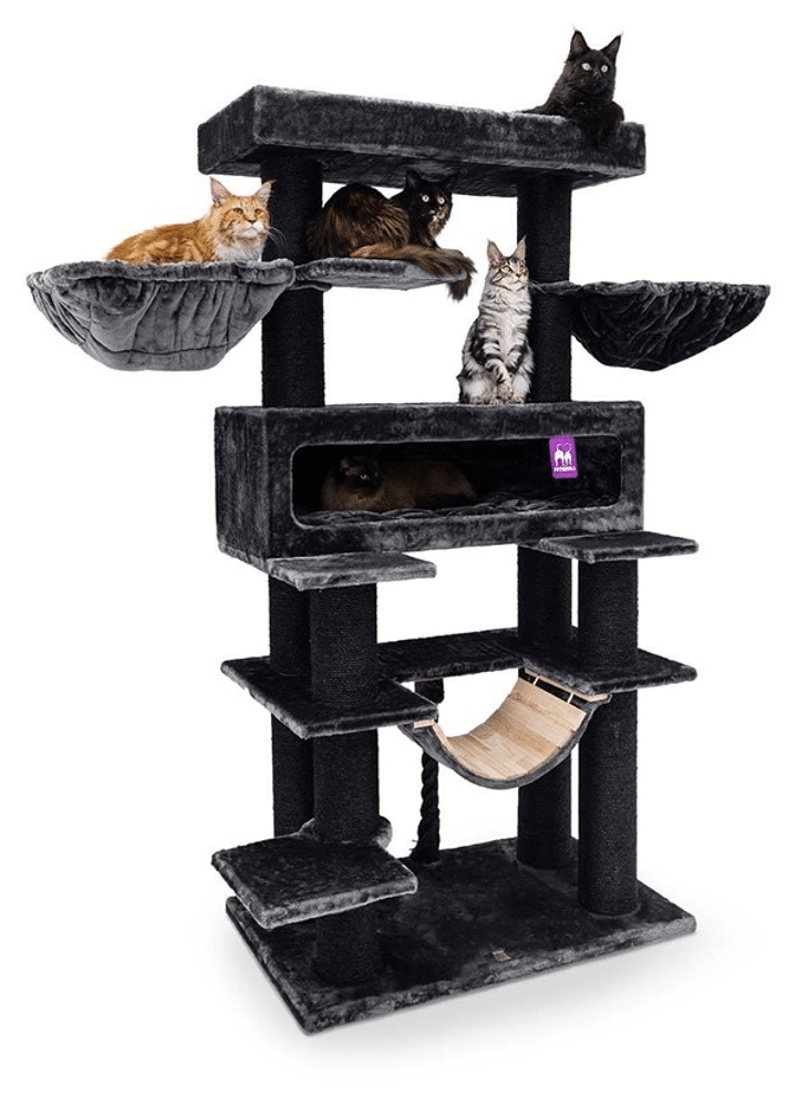 Avontuurlijke katten kunnen hun hart ophalen in kattenmeubel Lookout 198. Want hierin kan werkelijk waar alles! Krabben aan de extra dikke krabstammen van 15 centimeter dik, tijgeren over de houten brug en uitgestrekt slapen in de mega lounge of een van de tweeluxe hangmatten. En de XL-loungemand bovenin is speciaal voor Rebels die graag hoog zitten of liggen. Heerlijk om in te snurken, maar natuurlijk ook om te kijken of de visite wel te vertrouwen is.