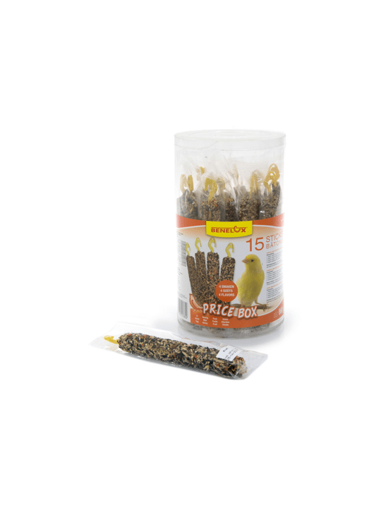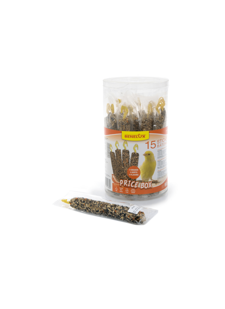 Benelux lekkernijen in een doosje met 16 sticks voor kanaries uit zaden in diverse smaken. Rijk aan vitaminen en mineralen