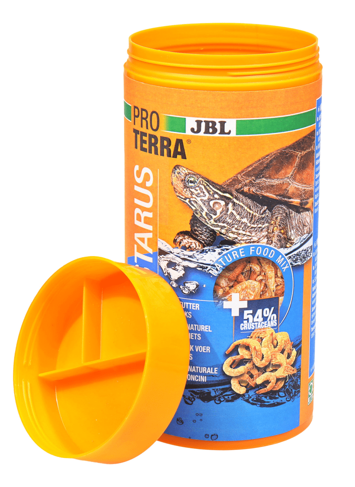 De Proterra Crustarus bevat een primaire voedermix voor water- en moerasschildpadden met kreeftjes, vissen, garnalen en voedersticks welke visvlees bevatten. Deze primaire voedermix zorgt voor een gezonde, mineraalrijke en soort specifieke verzorging van alle moeras- en waterschildpadden. Dit product bevat zacht gedroogde vlo kreeftjes (ca. 1 cm), garnalen (ca. 3 cm), vissen (max. 9 cm) en voedersticks met visvlees (ca. 1,5 cm) voor een natuurlijke en afwisselende verzorging. Bevordert een gezonde ontwikkeling van het pantser dankzij het natuurlijke calciumgehalte van onbehandelde voederdieren. Zonder toevoeging van kunstmatige kleurstoffen en conserveringsmiddelen. Potje, deksel, folie en etiket 100% recyclebaar. Deze verpakking bevat 1000ml.