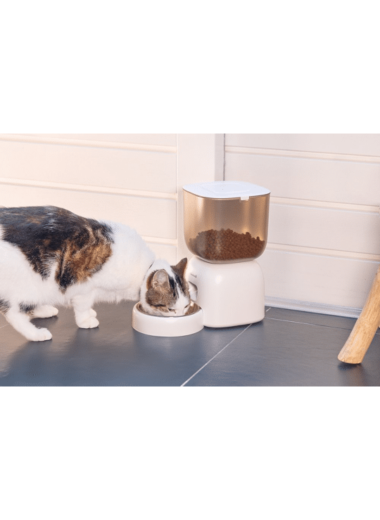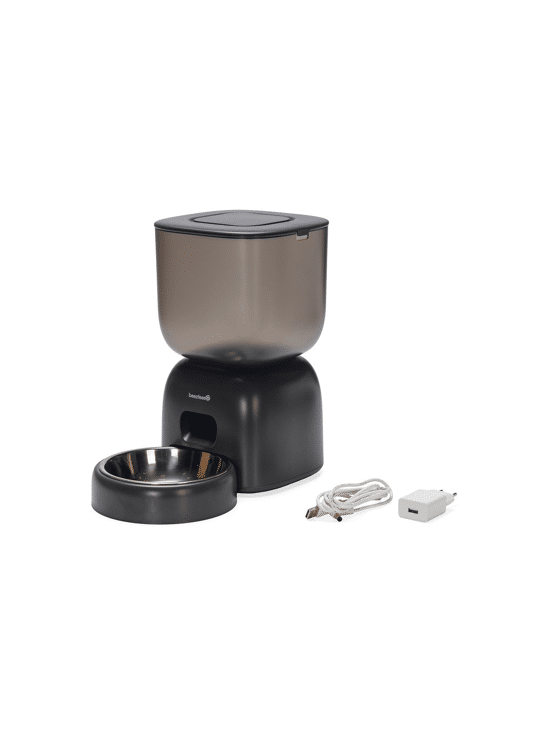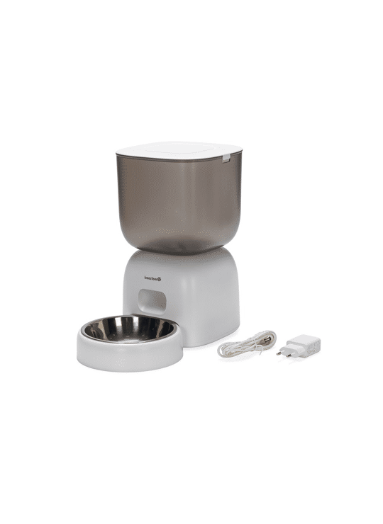 Beeztees Smart Automatische Voerbak Chris isperfect voor het slim en efficient voeren van je kat of kleine hond. Met detransparante voedselcontainer controleer je eenvoudig de hoeveelheid voerzonder de bak te openen. Via de app stel je moeiteloos een persoonlijkvoedingsschema in, met de mogelijkheid van een tot vier maaltijden per dag. Devoerbak is geschikt voor droogvoer met een brokgrootte van 5 tot 12 mm, en jekunt zelfs een persoonlijke boodschap van 10 seconden opnemen om je huisdier teroepen tijdens het voeren. Het vervangbare droogmiddel (inbegrepen) zorgtervoor dat het voer vers blijft en niet vochtig wordt. De roestvrijstalenvoerbak is hygiënisch en makkelijk schoon te maken. Met een royale capaciteitvan 3 liter hoef je minder vaak bij te vullen, wat het voeren van je huisdiernog gemakkelijker maakt.