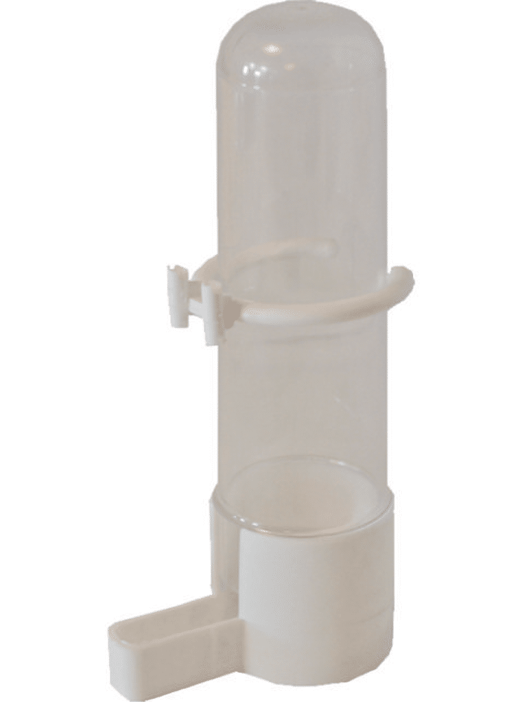 Drinkfontein voor kooivogels. De staaffontein klemt u tussen de verticale spijlen aan de buitenkant van de kooi waardoor u het water makkelijk kunt verversen. Omdat vogels moeilijk het drinkwater kunnen bevuilen hebben ze altijd schoon water.