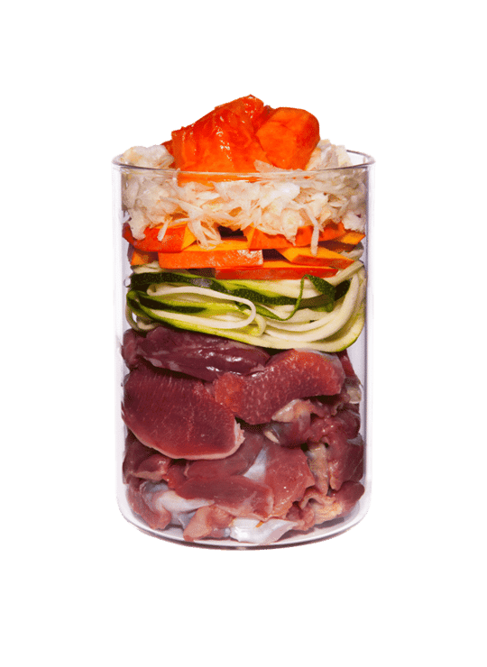 Samenstelling: Kippenhart(31%), courgette (23%), pompoen, kippenmaag (11%), kippenlever (8%), papaja(8%), pastinaak*, kokosmeel, pittenmeel pompoenpitten, psylliumzaad, druivenpitolie, lijnzaadolie, biergist*, oesterschelp*, rozenbottel* (0,3%),artisjokblad* (0,3%), paardenbloem*, klei*, zeewier*, minerale stoffen*gedroogd